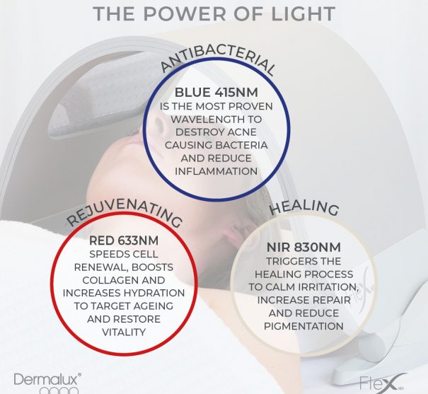 Dermalux Flex MD is a non-invasive treatment that delivers clinically proven therapeutic light energy for rejuvenating and corrective benefits. Specific wavelengths are absorbed by the skin to stimulate cell renewal and collagen production, resolve problem skin conditions such as acne and redness and accelerate skin healing. It is a safe and pain free treatment without downtime.
